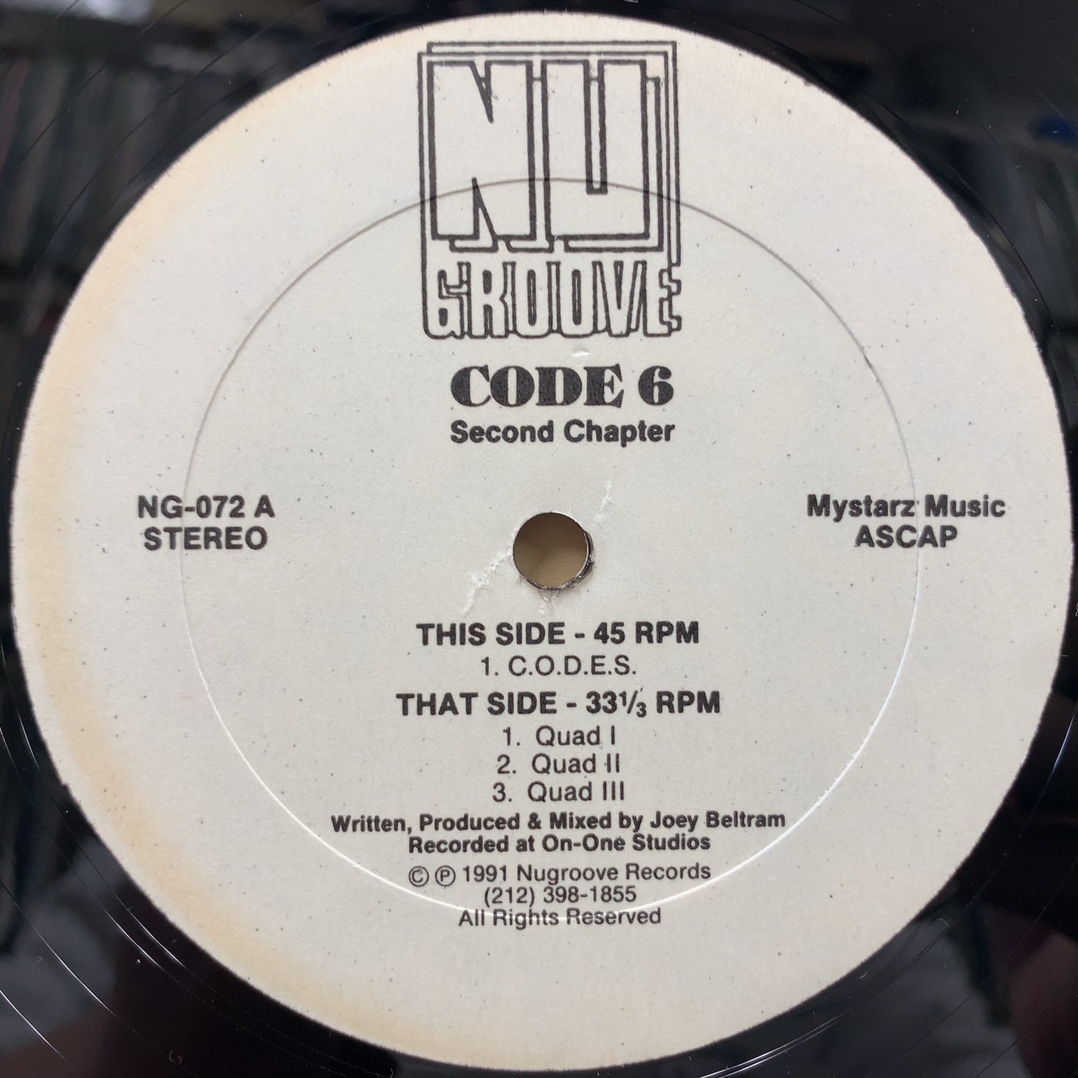 1988年から4年間の運営に関わらず、多くの名曲をリリースしたNYカルトハウスレーベル[NU GROOVE]の レアな72番!NYのベテラン・テクノアーティストJoey Beltramこと"CODE 6"の初期作。