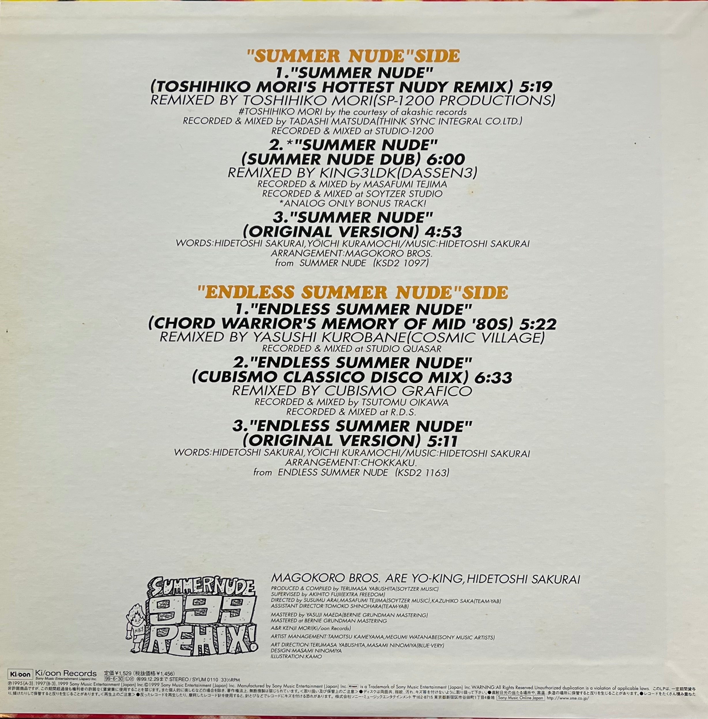 真心ブラザーズ / Summer Nude 999 Remix (Ki/oon – SYUM 0110, 12inch)