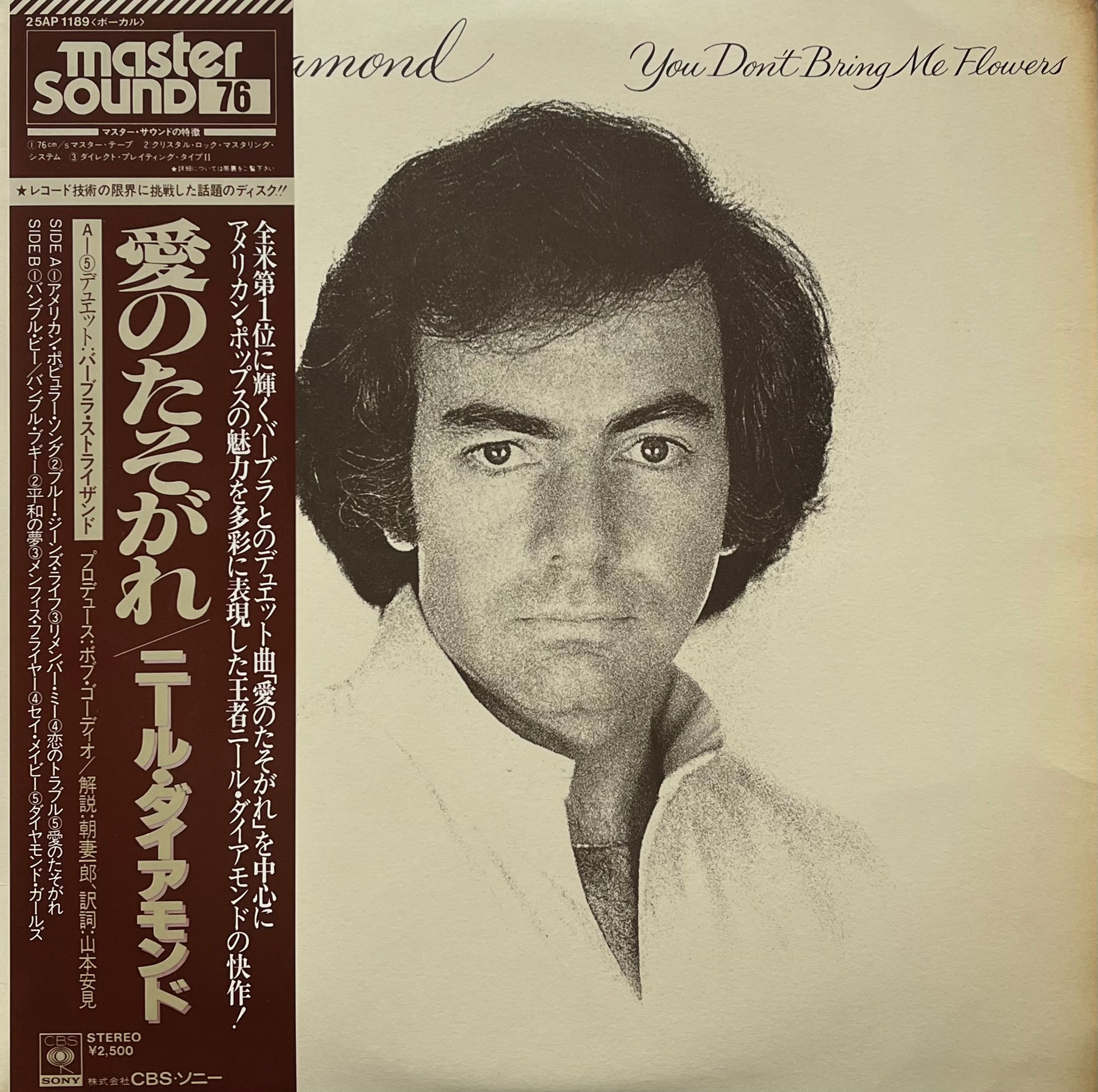 NEIL DIAMOND / You Don't Bring Me Flowers 愛のたそがれ (CBS/Sony – 25AP 1189, LP) 帯付 Mastersound