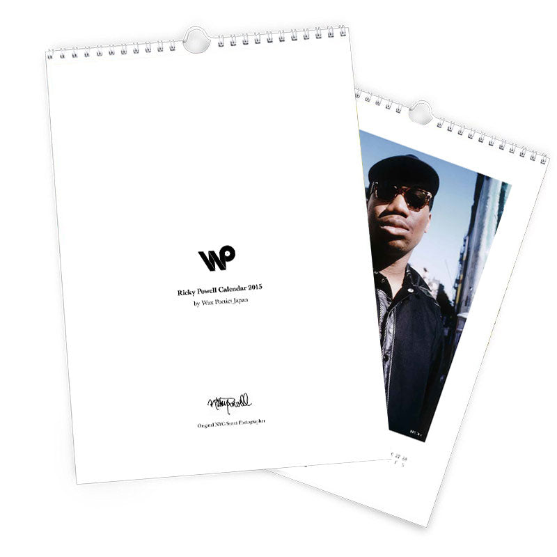 ニューヨークを代表するストリート・フォトグラファーのリッキーパウエルと音楽雑誌Wax Poetics Japanがタッグを組み、2015年のカレンダーが完成した。ニューヨークを中心に80年代から活躍するリッキー・パウエルが捉えた非常にレアな12枚のフォトショットを1枚ずつ12ヶ月間に渡り並べている。掲載されている写真はハービー・ハンコック、ジャン・ミシェル・バスキア、KRSワン、レニー・クラヴィッツ、メソッドマン、エリックB & ラキム、ボ・ディドリー、フレヴァー・フレイヴ、ランDMC、クール・キース、ドンディ・ホワイト、アーメット・アーティガンなどアメリカの重鎮、成功者達がずらりと並ぶ。是非、この2015年のカレンダーで、NYストリートの一際輝いていた時期を体感して欲しい。